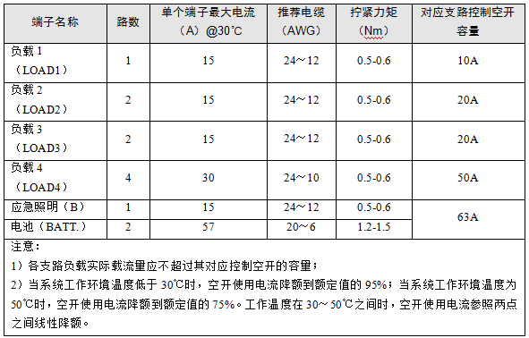 导线端子的规格型号及电缆的规格型号可根据实际负载来选配,推荐的连接电缆及端子型号见表2所示。