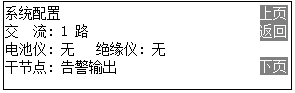 如果输入维护级密码02051并按<确定>键,则进入系统配置菜单,可对显示语言、系统类型、模块个数、电池巡检单元个数、绝缘监测单元个数、馈出支路数等系统配置信息进行设置:
